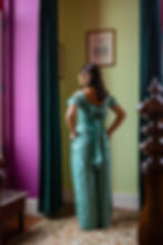Top Glícinia em linho verde com nervuras e laço nas costas
